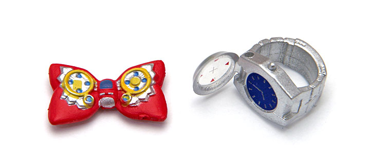 | 蝶ネクタイ型変声機は裏がすごい。腕時計型麻酔銃は照準器になる風防が動きます |